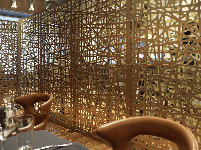 Designed to provide an elegant and private mood for its patrons. The front restaurant area is divided by decorative screens creating separation between bar and dining space providing privacy and at the same time seamlessly fitting into the exquisite design of the venue.